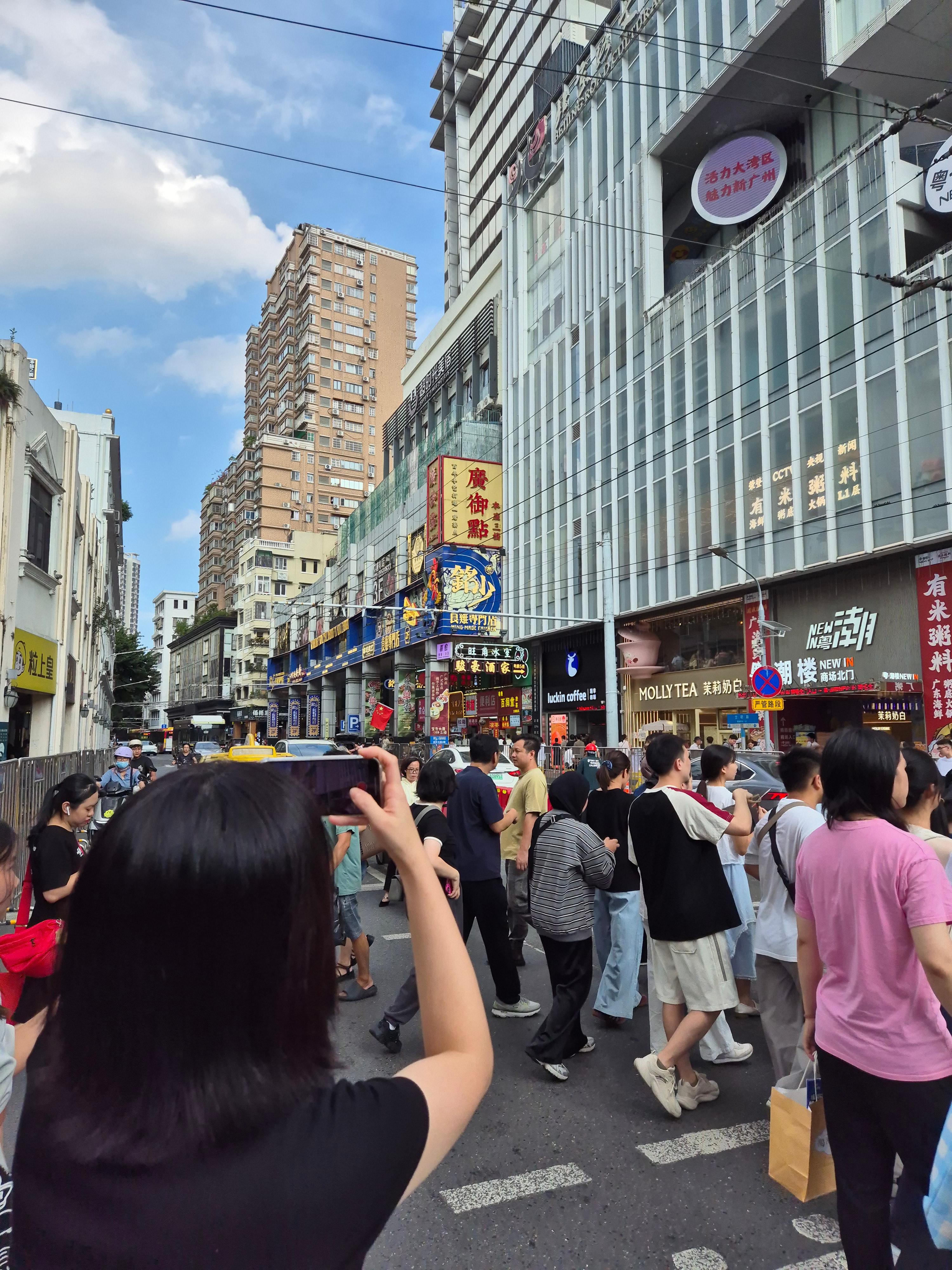 광저우에서 가장 번화가 중 하나인 '베이징루 北京路'에 왔다. 중국 최대 명절 중 하나인 중추절 연휴라서 각지에서 광저우로 사람이 몰린 듯했다. 사람이 정말 많았다! 대륙의 스케일을 느끼며 베이징루 대로를 따라, 마실 것도 사 먹고 이것저것 구경하며 길을 걸었다. 우리나라 명동처럼 이것 저것 보는 재미가 있었다.