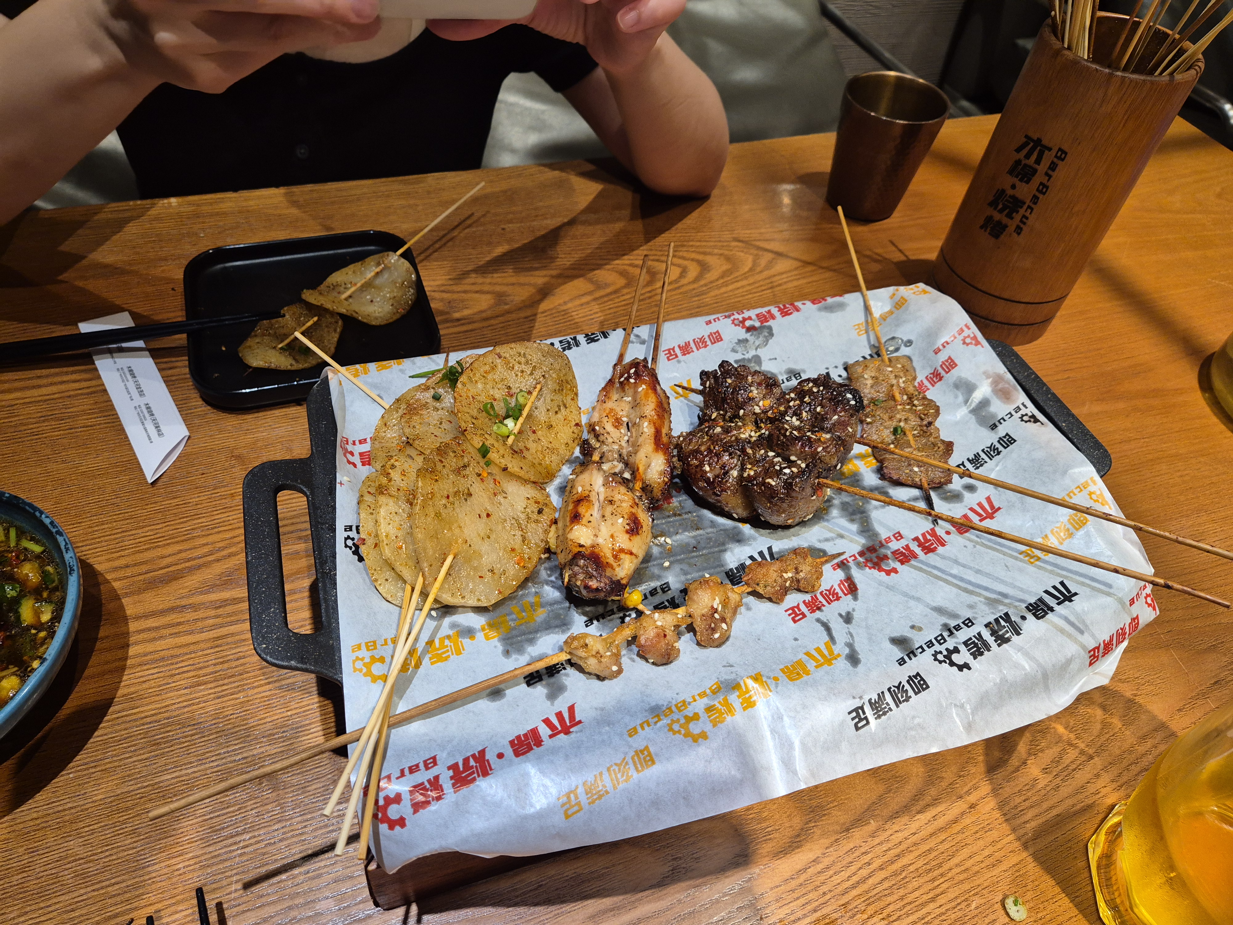 숙소로 들어와서 씻고 좀 쉬었다가, 야식으로 호텔 근처 꼬치집에서 야식을 먹으며 하루를 마무리했다. 이 날 걸은 걸음 수 1만 6천보. 많이 먹어서 살이 찔 것인가, 많이 걸어서 살이 빠질 것인가..!